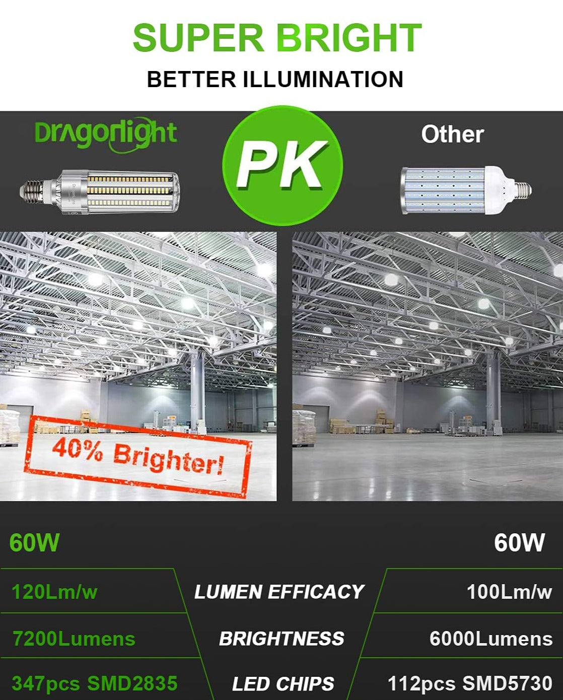 Instant on, 360 degree omni-directional illumination,cover bigger area. Sturdy IC constant driver,consistent and trustworthy for 24 hours continuous commercial&industrial lighting
