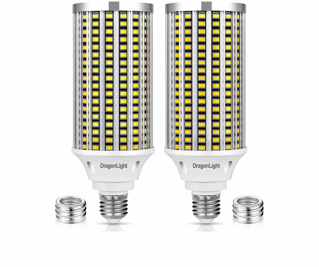 DragonLight 60W LED Corn Bulbs 3000K Warm White E26/E39 Base 7,200LM [Twin Value Pack]