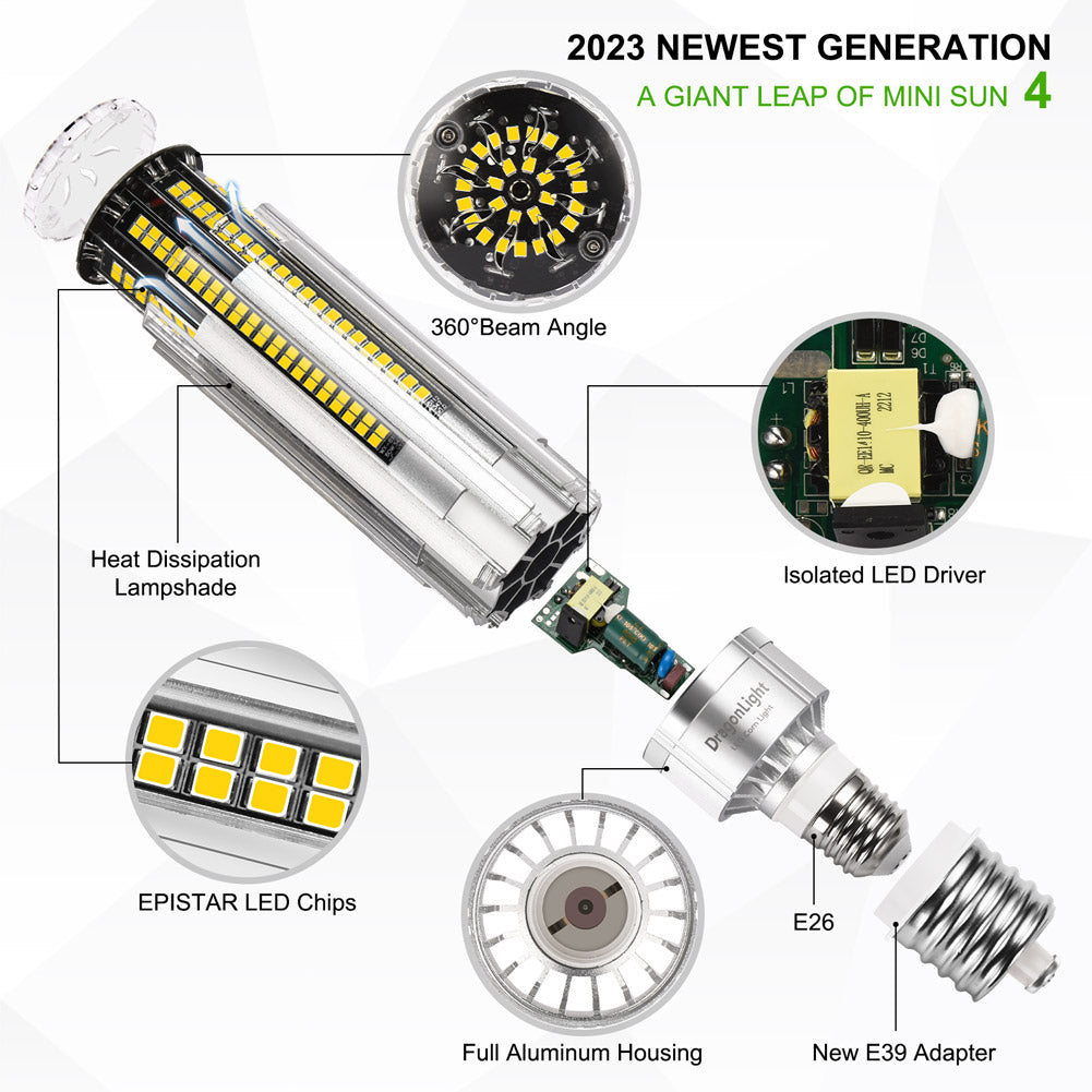 US Design with 2023 Newest LED technology. Full Aluminum-plated housing with strong isolated LED driver. Fanless design with fast heat dissipation, slim body with diamond PC lampshade. Good for totally enclosed and open luminaries in totally quiet operating